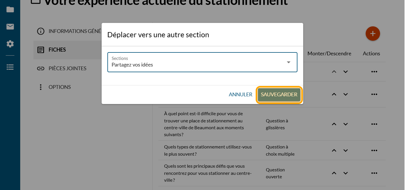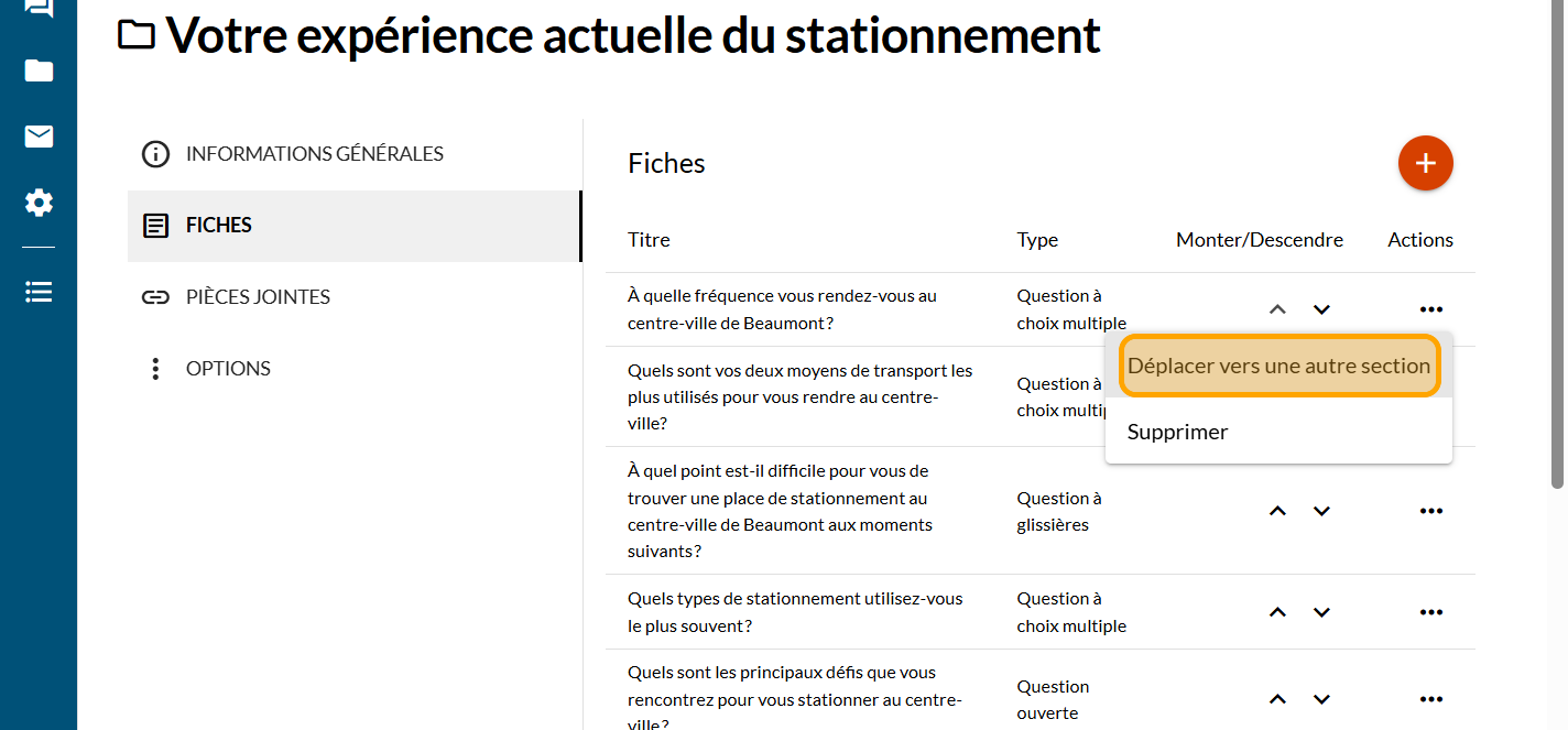 Cliquez sur les ... qui se trouve à la droite de la question que vous voulez déplacer