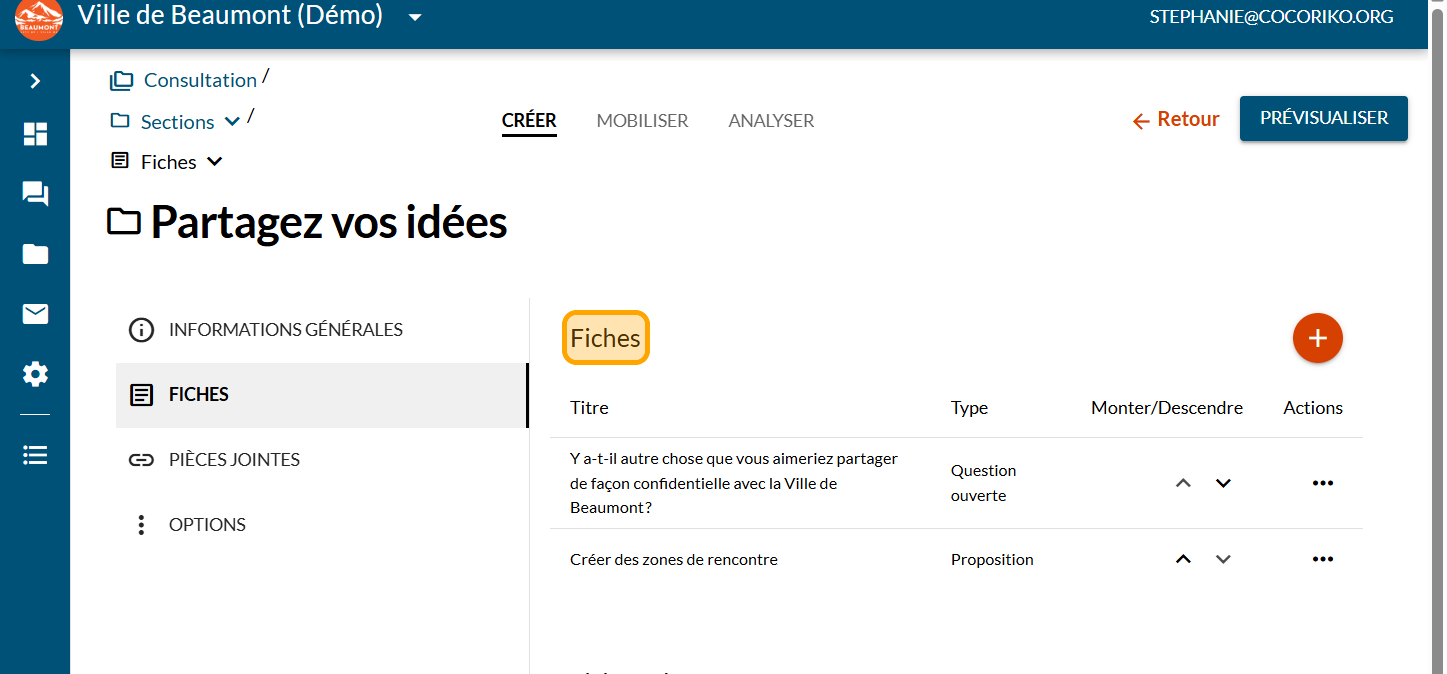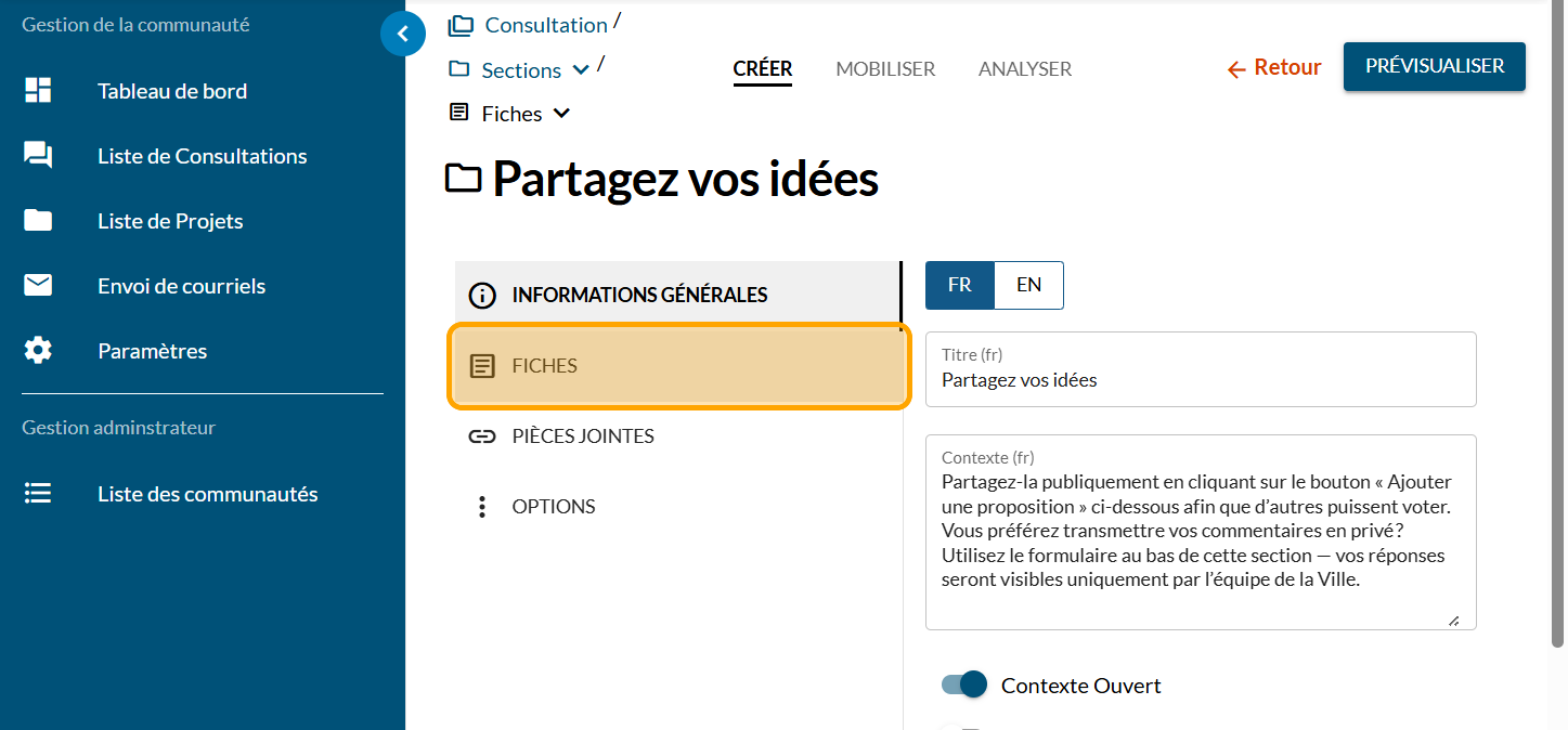 Dans la section "Fiches" vous verrez les propositions rédigées par les administrateurs