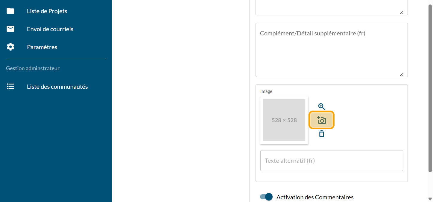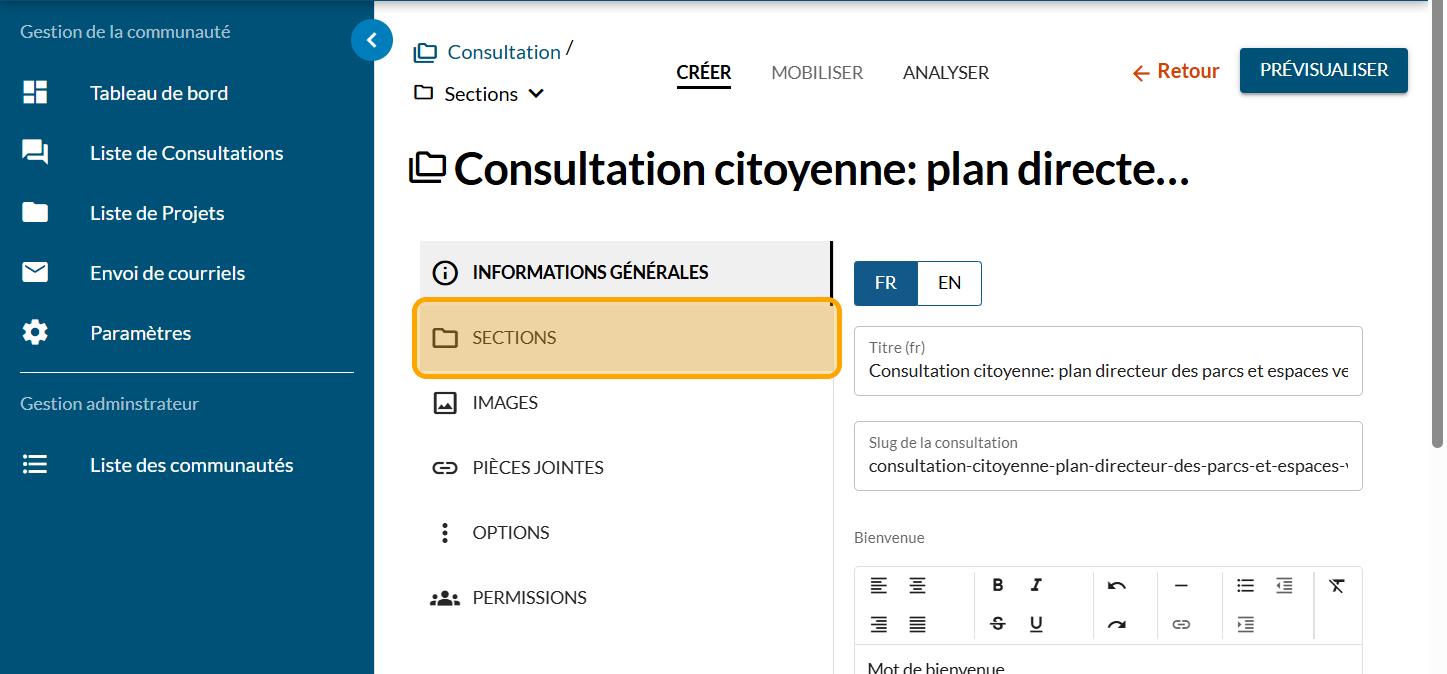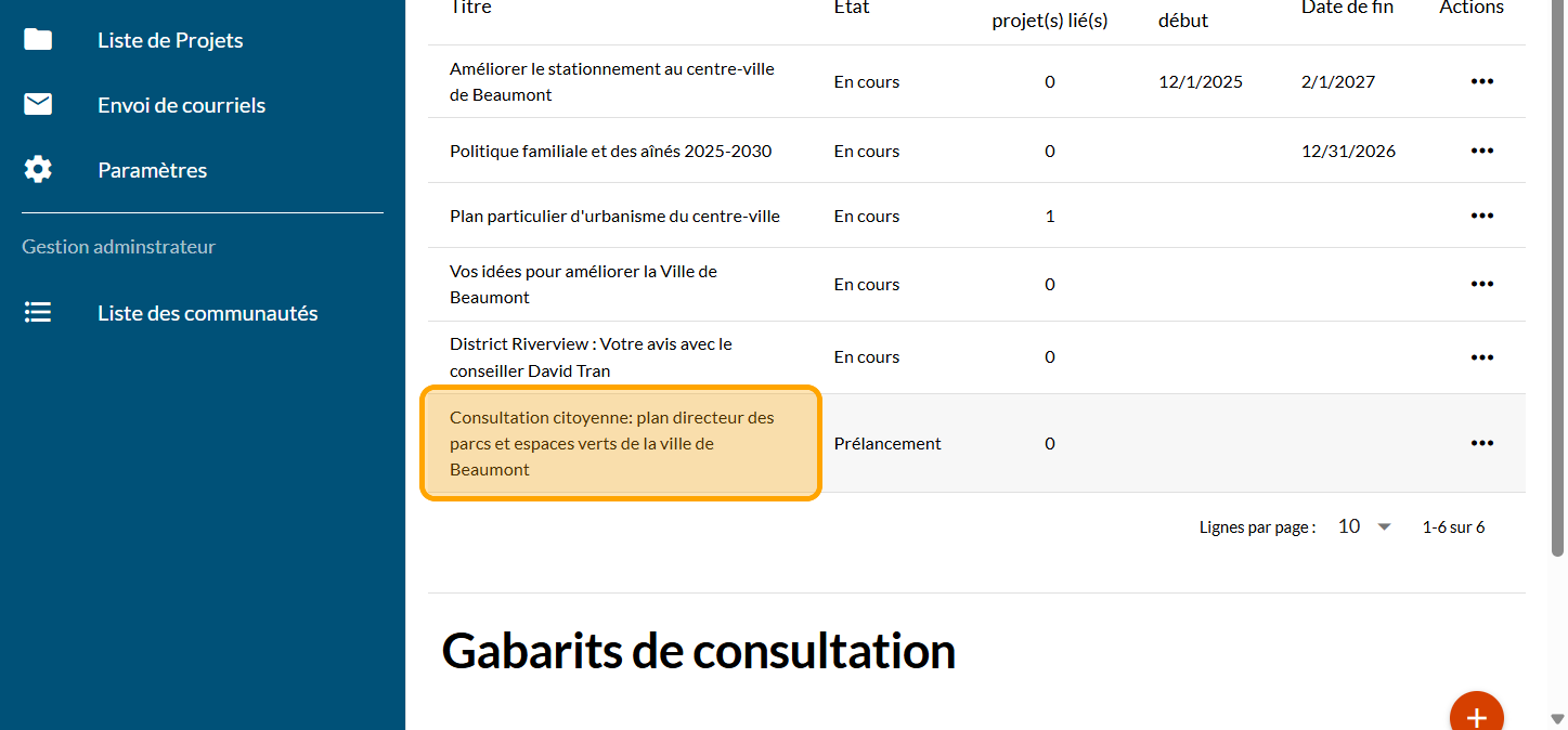 Dans l'interface de l'administration, cliquez sur votre consultation