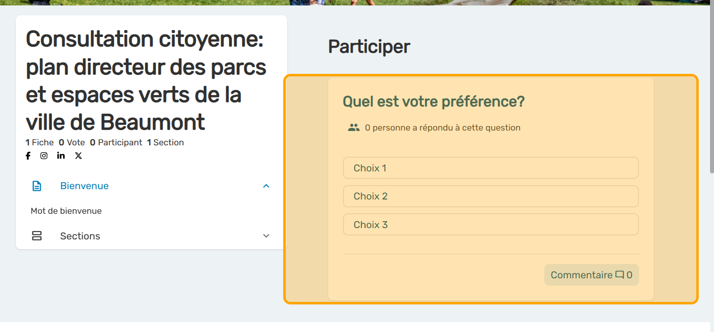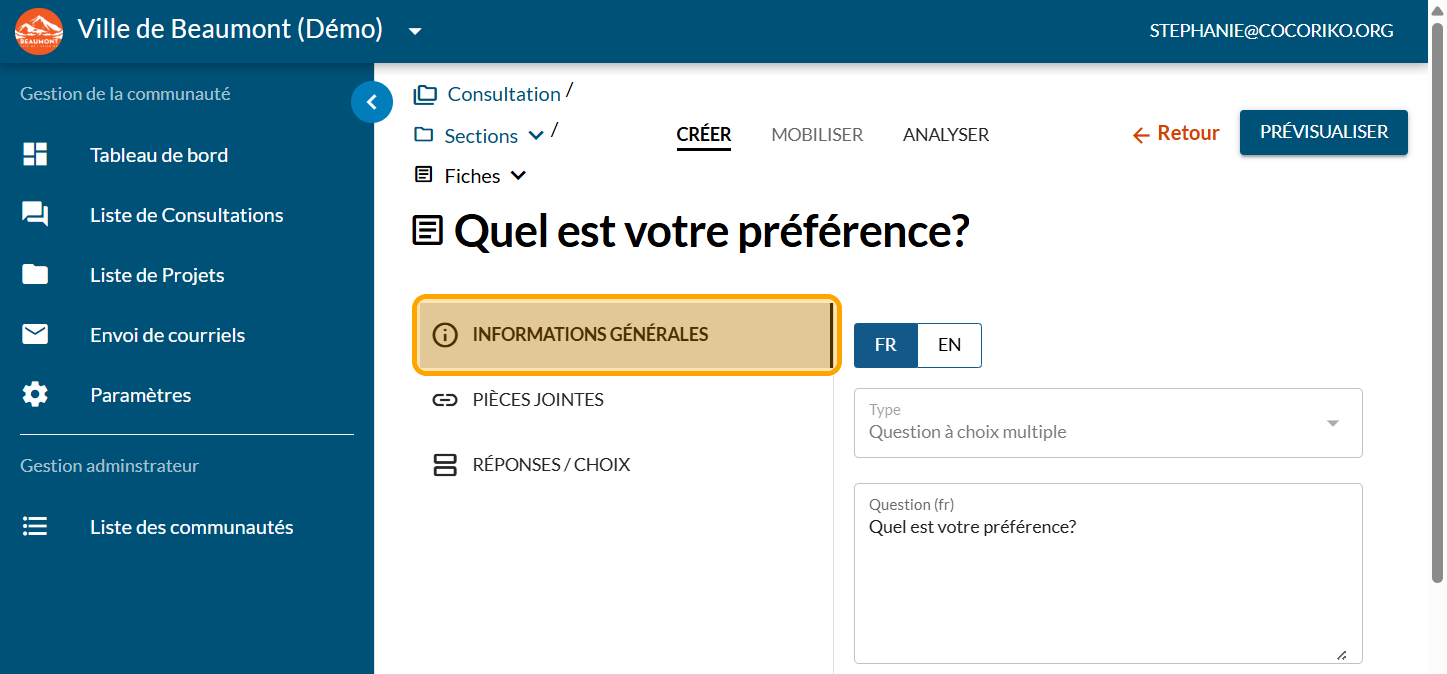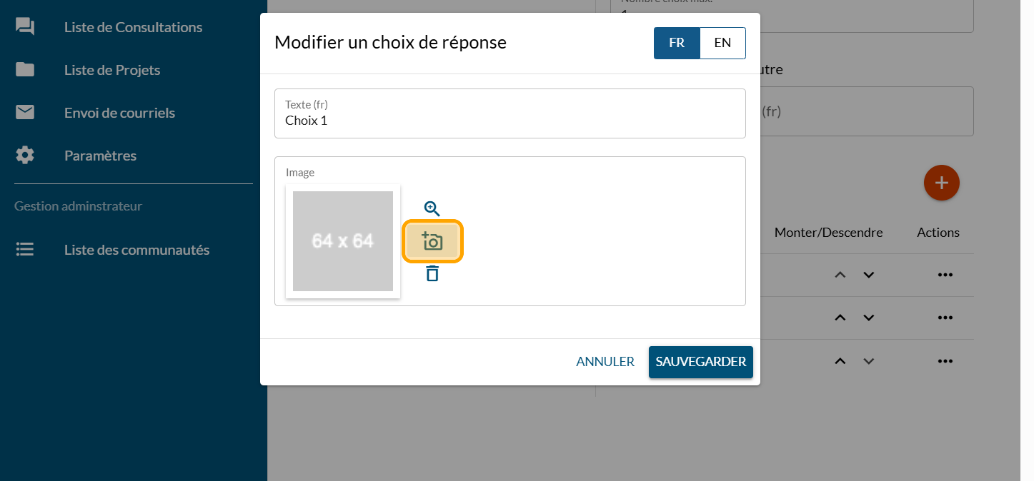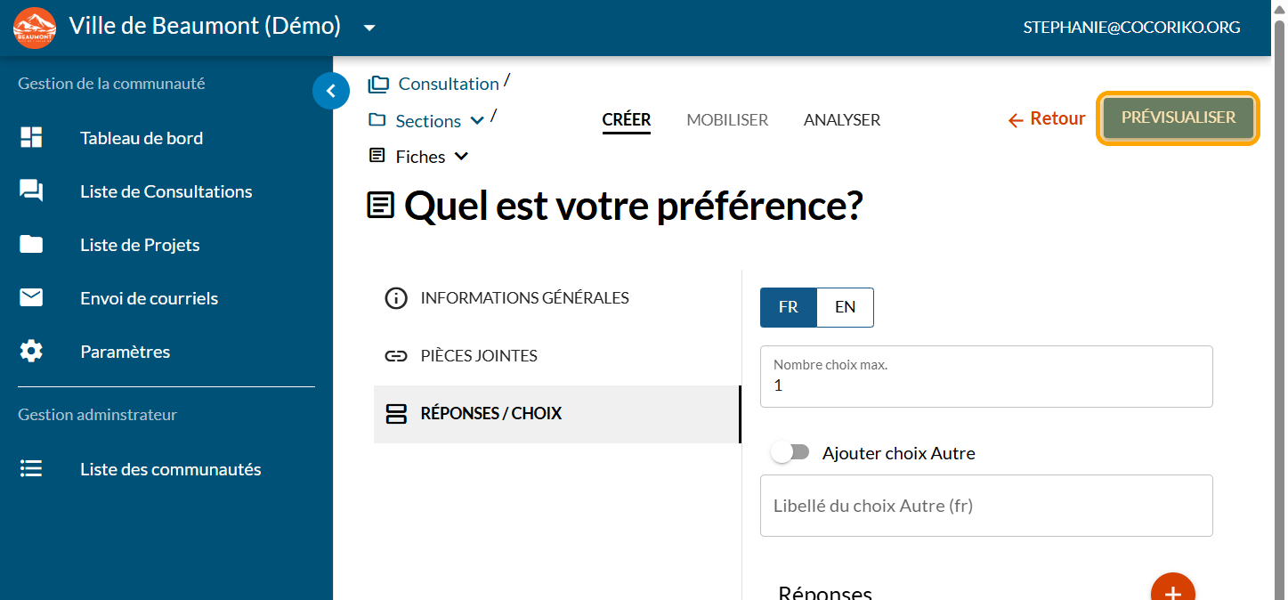 Dans l'interface de l'administration, retourner sur la question à modifier. Cliquez sur "RÉPONSES / CHOIX"