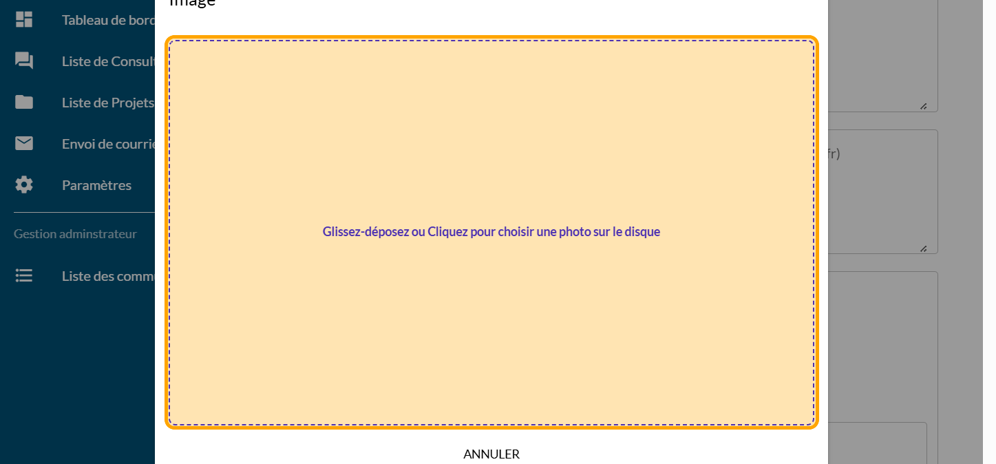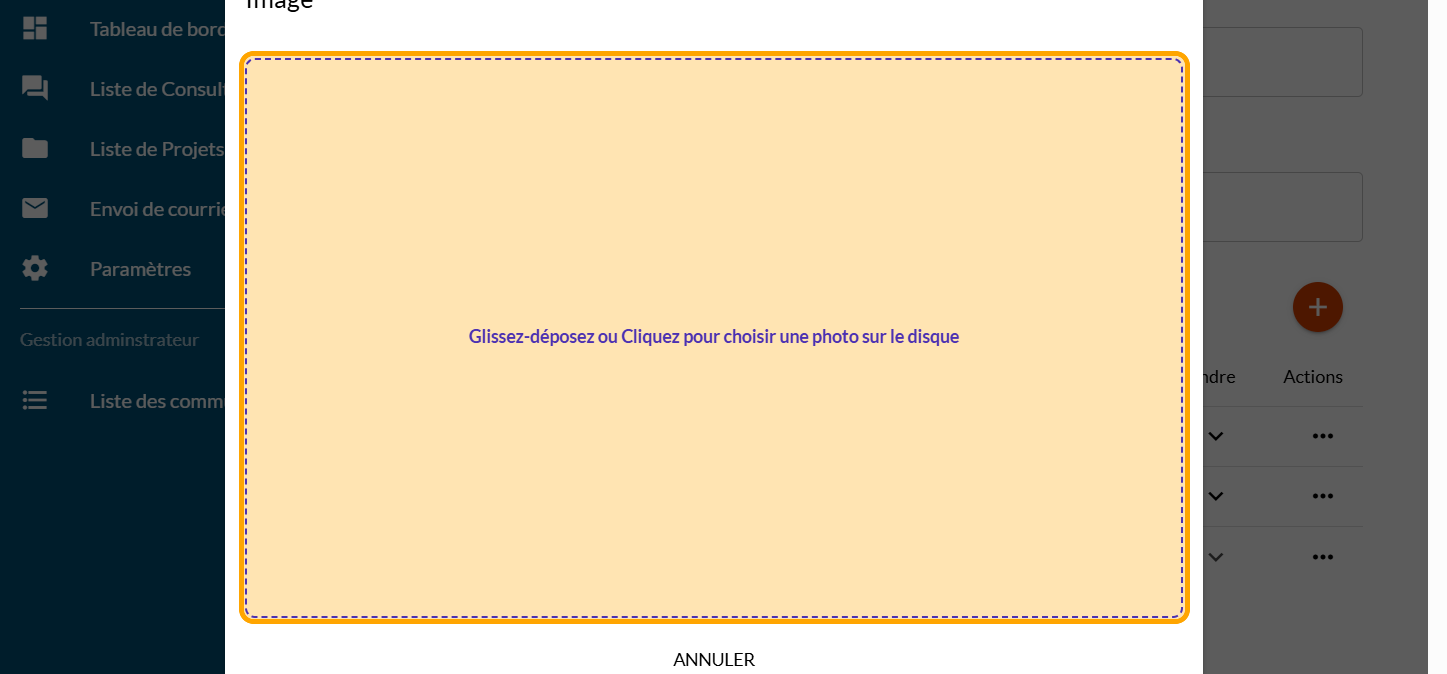 Cliquez sur "Glissez-déposez ou Cliquez pour choisir une photo sur le disque"
