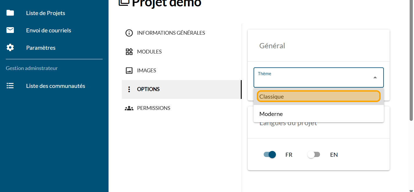 Vous pouvez consulter une liste de tous les modules disponibles sur le thème Classique ou sur le thème Moderne. Pour lire un article du centre d'aide pour l'ajout de chacun des modules, cliquez ici.