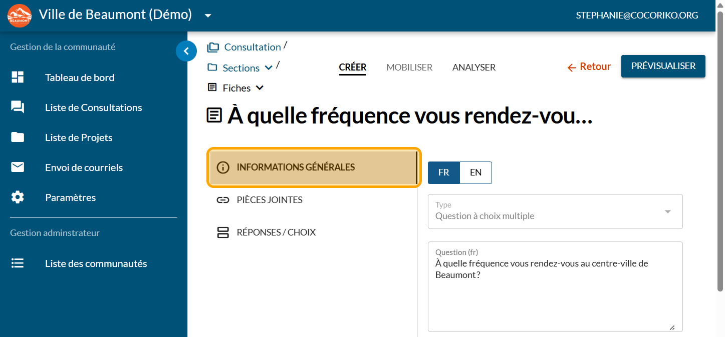 La zone de commentaire est présente par défaut mais peut être retirée sur certaines questions, comme les questions démographiques, et être retirée sur toutes les questions pour une expérience de type sondage.